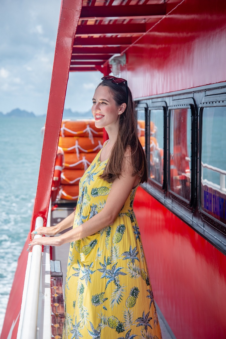 - Lựa chọn thời điểm: Nên ra boong khi tàu đã ổn định tốc độ và đi vào vùng vịnh lặng sóng. Tránh ra ngoài khi có thông báo của nhân viên tàu trong điều kiện thời tiết xấu.
