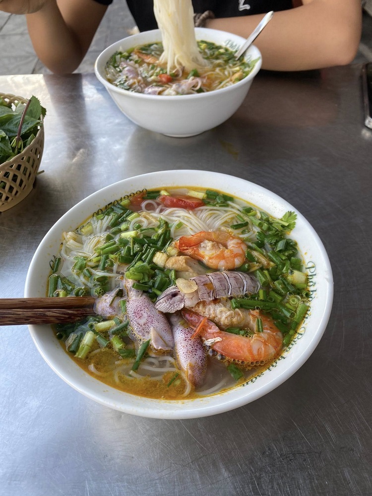Trước khi tạm biệt Cô Tô mình tranh thủ ăn một bát bún hải sản đậm đà hương vị biển, rồi lững thững lên tàu Cô Tô chuyến 13h để trở về đất liền.