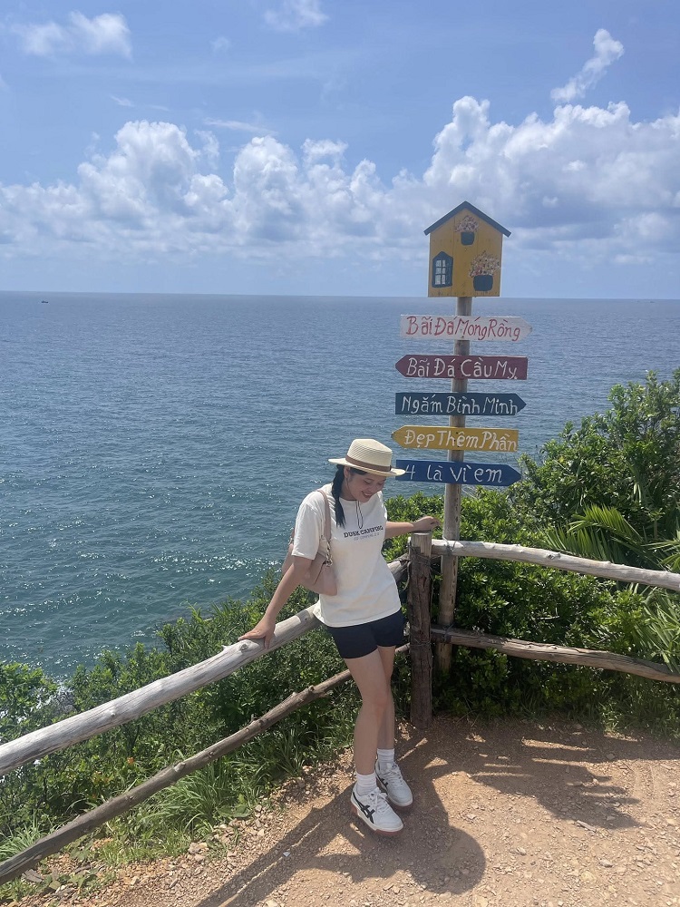 Sáng cuối cùng, mình dậy thật sớm để kịp đón những tia nắng đầu tiên tại bãi đá Móng Rồng (Cầu Mỵ). Sau đó là hành trình leo lên ngọn Hải Đăng để ngắm nhìn toàn cảnh biển xanh ngắt của huyện đảo từ trên cao.