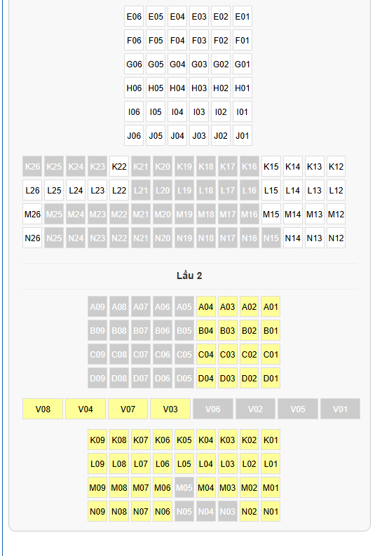 Chọn vị trí ghế còn trống, ghế màu xám là vé đã bán.
